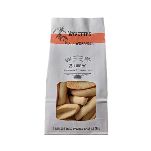 Die Navette Fleur dโOranger wird im Herzen der Provence hergestellt und ist ein traditionelles franzรถsisches Gebรคck mit einer zarten Bootsform und einem raffinierten Orangenblรผtenaroma. Diese handwerklich hergestellte Kรถstlichkeit verkรถrpert den zeitlosen Charme provenzalischer Backkunst und bietet eine knusprige Textur und einen dezent blumigen Geschmack, der sanft am Gaumen verweilt.